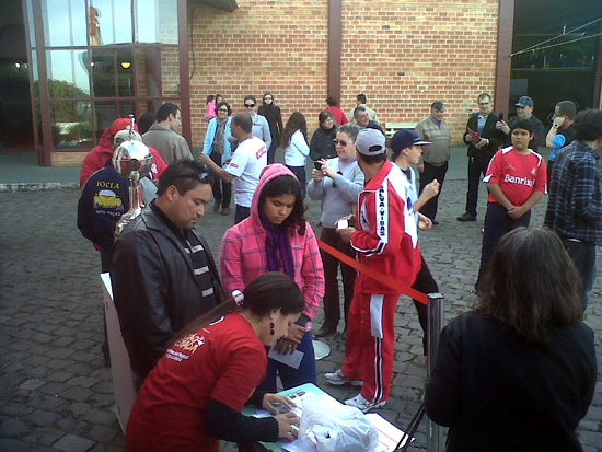 Seguindo o planejamento de captação de novos sócios, o Sport Club Internacional esteve representado em Flores da Cunha no último sábado (21/7), no Festival de Inverno do município. O ônibus oficial do Clube, as taças e o ex-atleta Caçapava foram atrações na cidade serrana. Centenas de Colorados passaram pelo local, e o Clube ganhou mais 26 novos sócios.