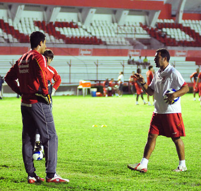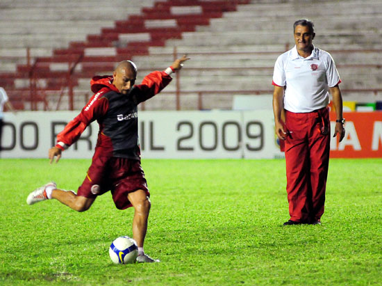 Guiñazu prepara o chute observado pelo técnico Tite