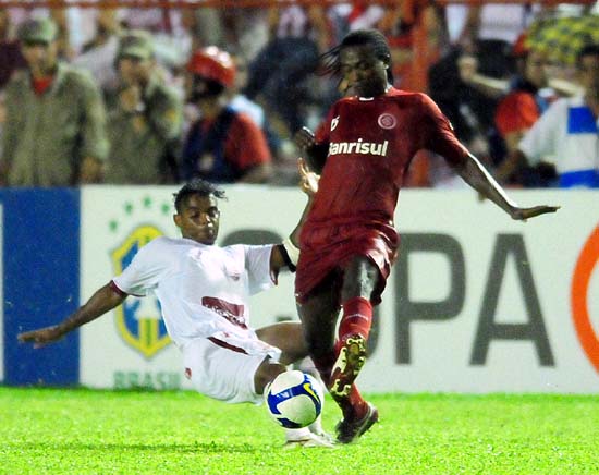 Que gramado ruim que nada! A qualidade do toque de bola do Inter transformou o péssimo piso do Estádio dos Aflitos em um tapete de Beira-Rio. Jogadores colorados superaram as dificuldades do campo e souberam seguir tocando a bola com muito talento. E foi assim, tocando de pé em pé que surgiu o primeiro gol do time marcado por Nilmar, aos 33min de jogo. A jogada começou com Kléber que recebeu na linha de fundo e achou Taison no bico da área. O goleador do Inter na temporada deu passe precioso para Nilmar, na meia-lua. O atacante enganou a marcação de Asprilla com um giro e um drible de corpo, entrou na área e chutou forte no alto: um golaço.