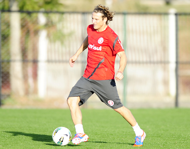Uruguaio Diego Forlán em ação no CT do Parque Gigante