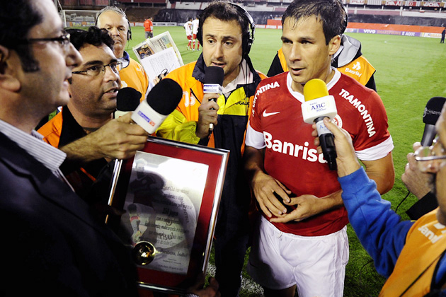"Este é um momento que me faz lembrar de tudo o que passei. Tudo que consegui foi graças ao esforço dos companheiros e ao apoio da torcida e do Inter. Muito obrigado", disse um emocionado Índio ao receber a placa.