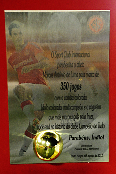 O zagueiro Índio completou contra o Náutico 350 partidas com a camisa colorada. Antes do confronto, o jogador multicampeão ganhou do Clube uma placa alusiva à marca das mãos do vice-presidente de futebol Luciano Davi.