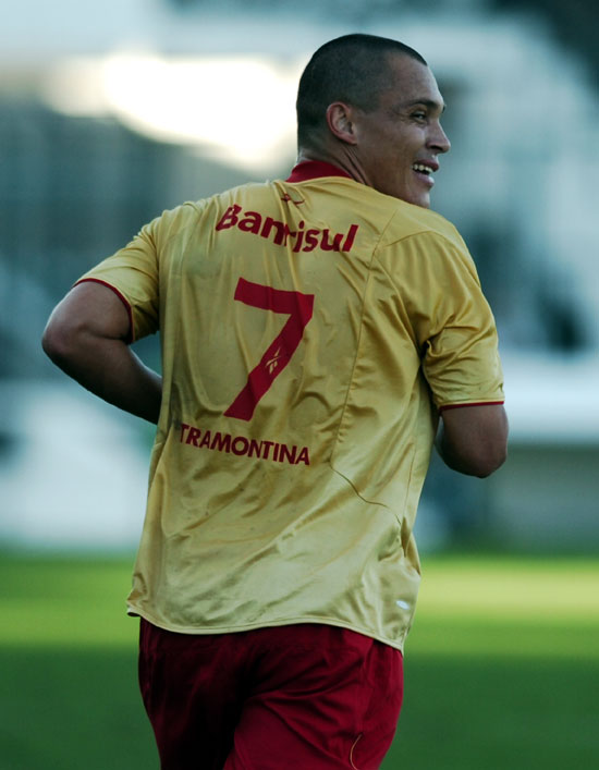 Com a camisa dourada e recuperado de grave lesão, centroavante Leandrão voltou a marcar gol pelo Inter
