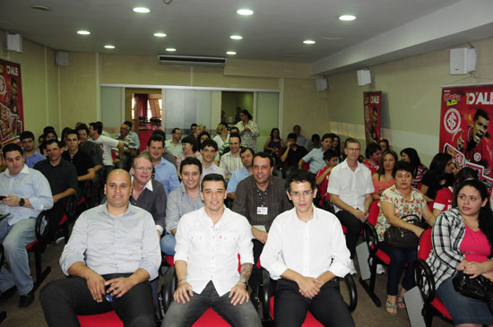 D'Alessandro (C, na frente) posou para foto junto aos varejistas presentes no evento