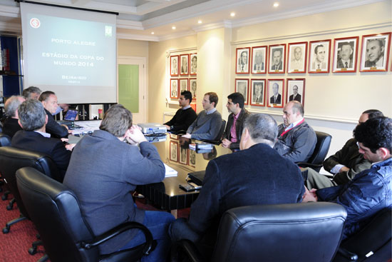 Uma comissão da FIFA realizou uma vistoria no estádio Beira-Rio, na manhã desta terça-feira (28/08). O atual andamento das obras de modernização, o cronograma estabelecido e as metas já atingidas foram apresentadas na sala da presidência para o consultor especial da FIFA de estádios, Charles Botta.
