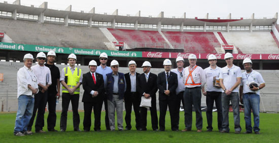Engenheiros do Internacional, da Andrade Gutierrez e do CREA no gramado do Beira-Rio