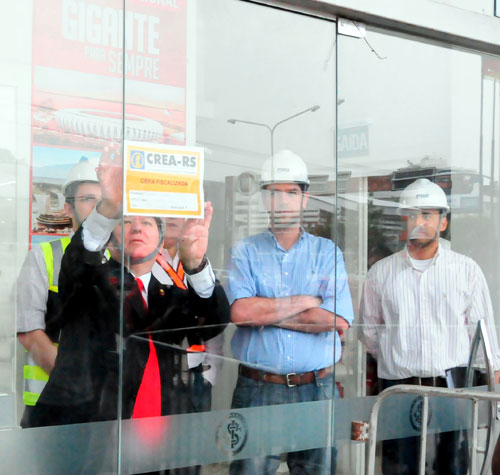 Presidente do CREA Luiz Capoani fixou documento no hall de entrada do Internacional