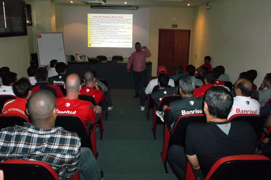 Aproveitando a sua passagem por Porto Alegre, gentilmente o professor Próspero Paoli aceitou apresentar um resumo de sua palestra “As Variáveis que Influenciam no Processo de Formação de Base no Futebol Brasileiro” para a comissão técnica das categorias de base do Inter. Após o evento, realizado no auditório do CT de Alvorada, o professor ministrou a palestra no 2º Congresso Internacional de Futebol & Iº Forum de Medicina do Futebol nessa sexta-feira e sábado (21 e 22/09).