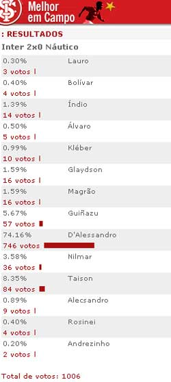 D'Alessandro vence enquete do melhor jogador em campo na partida de volta contra o Náutico