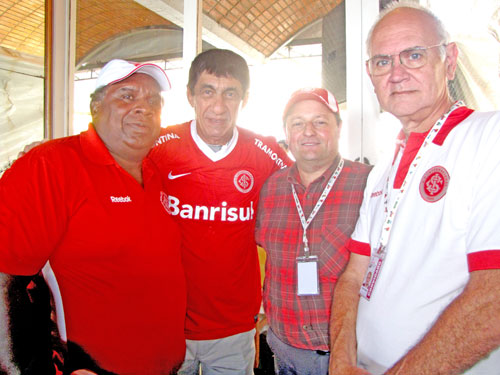 Caçapava (E), ídolo colorado, ao lado do cantor Fagner e do diretor regional Alberi Dalateia