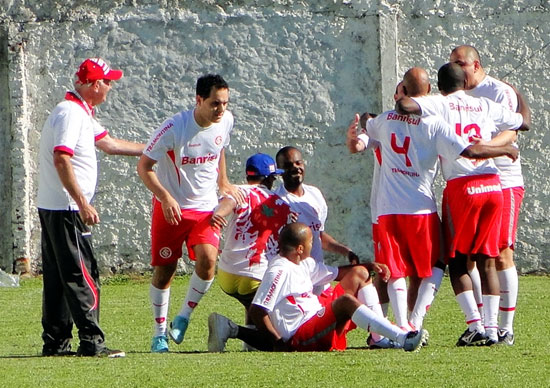 Sempre é bom: time do Inter comemora o gol no Gre-Nal dos Artistas