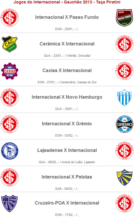 Em reunião realizada no dia 1º de novembro, na sede da Federação Gaúcha de Futebol, foi definida a tabela do Campeonato Gaúcho de 2013.