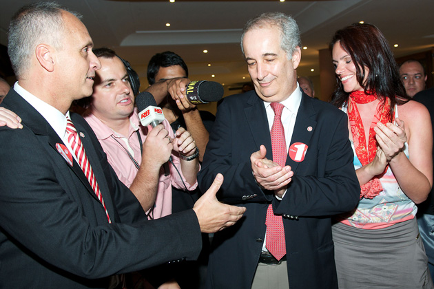 O presidente do Internacional, Giovanni Luigi, foi reeleito para o biênio 2013/2014 em votação realizada na noite desta quinta-feira (08/11), no Conselho Deliberativo. Com 166 votos, Luigi se elegeu no primeiro turno, já que foi o único candidato a ultrapassar a cláusula de barreira (25% dos votos). Luiz Antonio Lopes teve 80 votos (23,12%) e Sandro Farias, 64 (18,35%).
