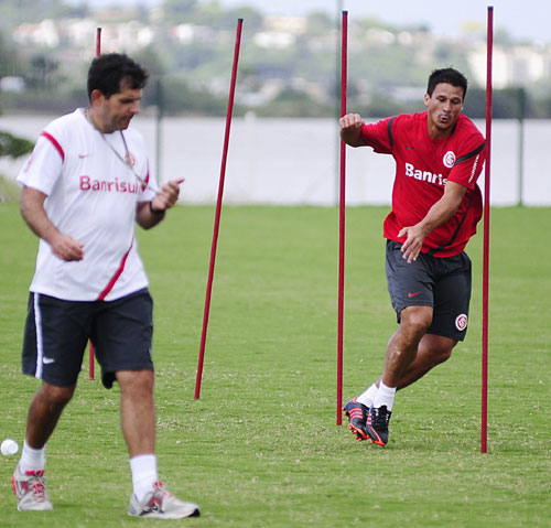 Zagueiro Índio (D) treina forte para reforçar o Inter após cumprir suspensão