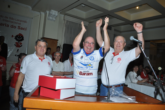 Durante a festa, o vice-presidente Gelson Pires prestou uma homenagem ao Aimoré, campeão da Segundona Gaúcha, com execução do hino e vestindo a camiseta do clube de São Leopoldo.