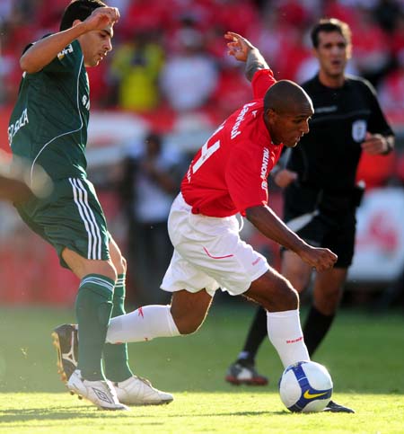 Nilmar tenta a conclusão na área palmeirense...
