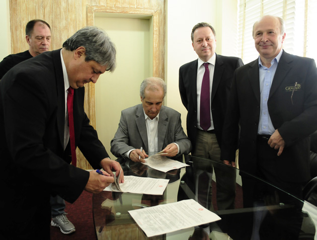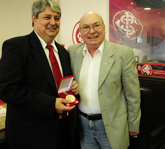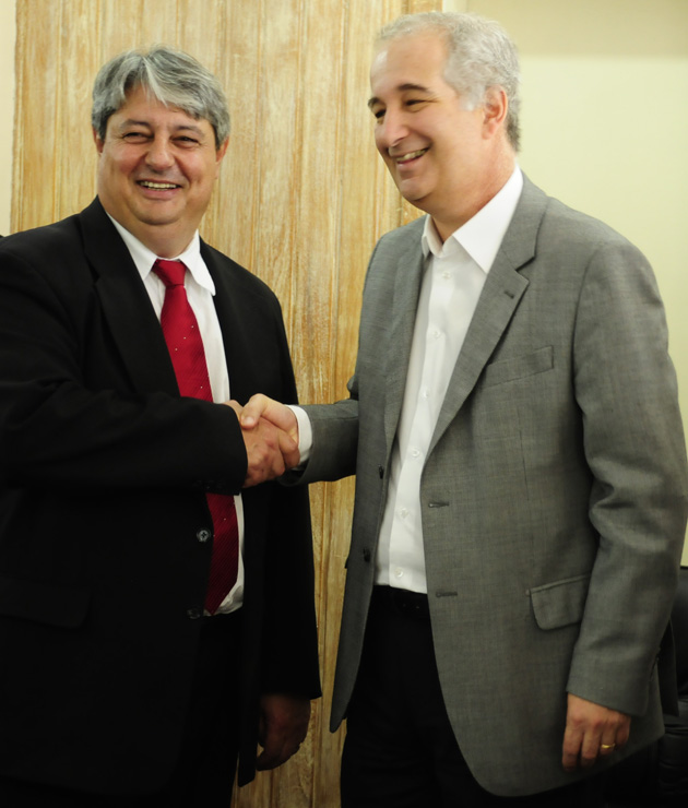 Prefeito de Gramado, Nestor Tissot, e o presidente do Inter, Giovanni Luigi, assinaram o contrato da pré-temporada 2013