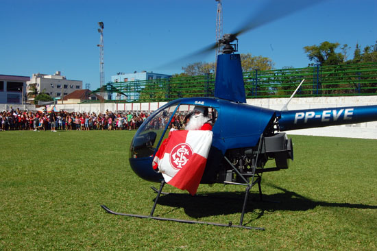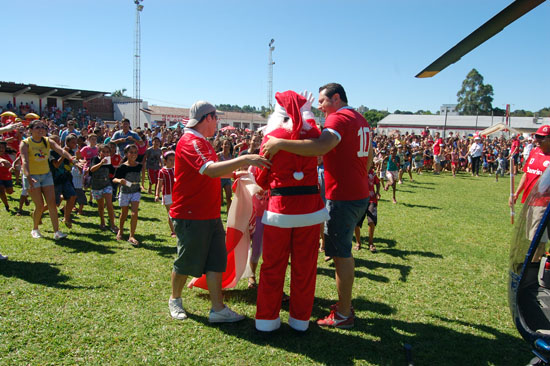 O Papai Noel chegou de helicóptero e todas as crianças tiveram a oportunidade de tirar fotos e pedir presentes. As mascotes Saci e Escurinho também marcaram presença na festa colorada e alegraram os jovens e adultos.