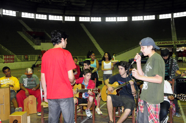 Outra atividade de destaque é a escola de música do Interagir. Os alunos têm aulas diariamente de violão, percussão, teoria e percepção musical. Os professores de música Dirceu, Mimmo, Diego e Allan César foram os responsáveis pelas apresentações realizadas a festa.