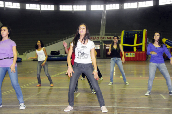 Na sequencia, a escola de dança fez sua apresentação. Mais de dez meninas dançaram na quadra do Gigantinho. O trabalho é desenvolvido pela professora voluntária de dança, Ândria Courtois.