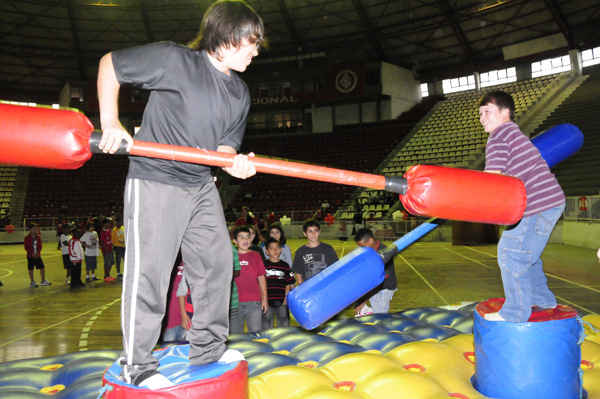 A criançada ocupou as arquibancadas do Gigantinho para festejar o aniversário do projeto. Crianças das mais diversas idades correndo de um lado para o outro com o sorriso estampado no rosto.