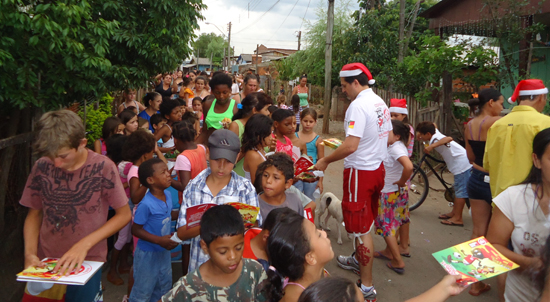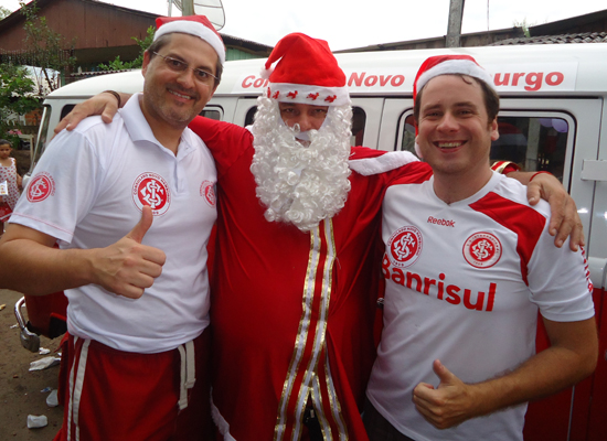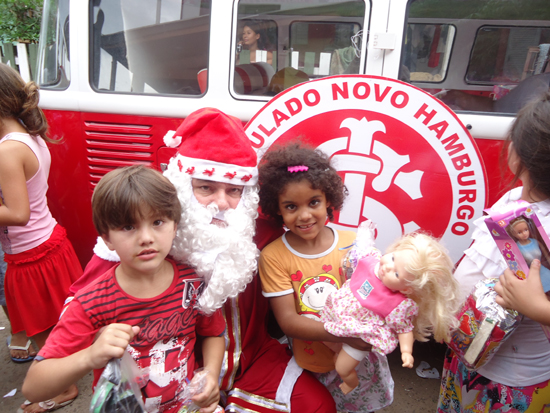 Mais de 700 crianças ganharam brinquedos, exemplares da Revista do Inter, adesivos do consulado de NH, lanche e balas no evento 'Chegada do Papai Noel', que foi realizado na última quarta-feira (19/12). Neste ano, a comunidade escolhida pelo Consulado do Inter em Novo Hamburgo foi a vila Kipling, situada no bairro Canudos. Segundo o cônsul João Carlos, a Associação dos Moradores também ajudou a organizar a festa que foi um sucesso.