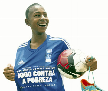 Garoto teve a oportunidade de jogar futebol com os maiores craques da atualidade e do passado no Jogo Contra a Pobreza