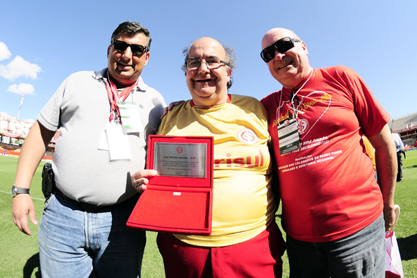 Xuxu (C) recebeu homenagem pela marca de 600 jogos fora do estádio Beira-Rio