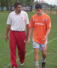 Alex (D) volta aos treinos orientado por Élio Carravetta (E)