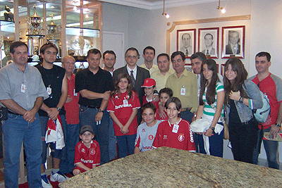 A cada 15 dias, o Sport Club Internacional sorteia um grupo de sócios para realizar um passeio pelas dependências do Estádio Beira-Rio. Os associados conhecem os camarotes, o vestiário da categoria profissional, o museu, a loja InterSport e entram no gramado do Gigante. Ao final da visita, os sócios têm um encontro com o presidente Fernando Carvalho, onde fazem elogios, críticas e sugestões. Veja as fotos da Visita Colorada realizada na última sexta-feira (22/10):