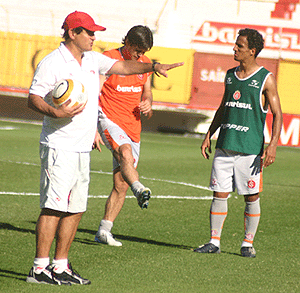 O técnico Muricy Ramalho orientou um coletivo de 50 minutos na tarde desta terça-feira no Beira-Rio, quando praticamente definiu a equipe que enfrenta o Junior, de Barranquilla, com Clemer; Wilson, Sangaletti e Edinho; Élder Granja, Gavilán, Marabá, Fernandão e Chiquinho; Rafael Sobis e Diego (Danilo). Diego treinou os primeiros 20 minutos do coletivo, enquanto Danilo o substituiu nos últimos 30 minutos. Diego sentiu dores musculares, que o transformam em dúvida para a partida. ?A única dúvida é entre Diego e Danilo?, afirmou Muricy.