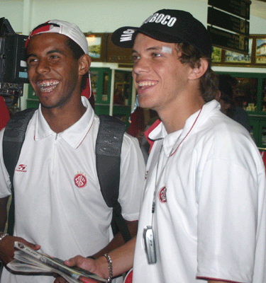 Diego (E) e Marcelo Labarthe (D) no embarque para Barranquilla, na Colômbia