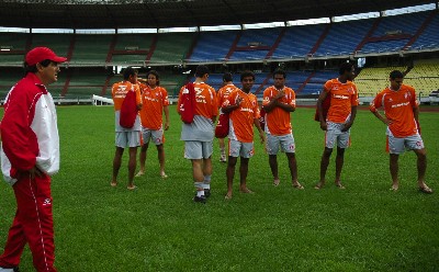 Chiquinho (E) e Gavilán (D) treinam na Colômbia
