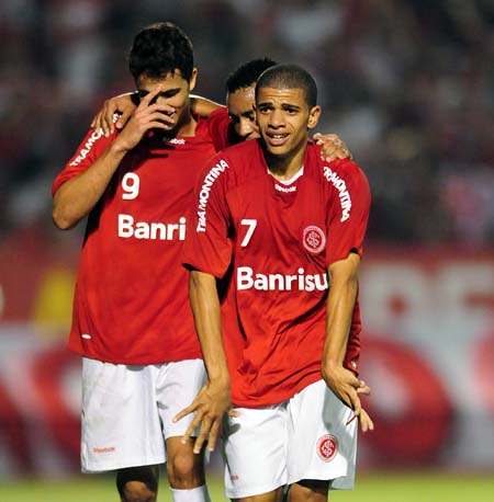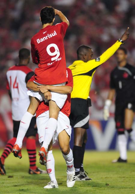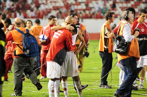 Taison (E) e D'Alessandro vibram com o gol de Taison