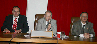 João Patrício Herrmann (E), presidente do Conselho Deliberativo, Luis Carlos Ávila de Carvalho Leite (C) e Fernando Carvalho (D)