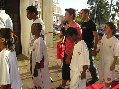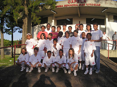 Os meninos da Primeira Comunhão e os seus " padrinhos": Wilson, Sangaletti, Vinicius, Álvaro, Marcelo Labarthe, Rogério Gaúcho, Diego, Diogo, Rafael Sobis, Felipe e Marabá.