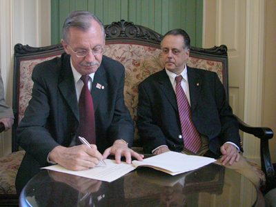 Com a participação do presidente do Sport Club Internacional, Fernando Carvalho, e representantes da diretoria e do Conselho Deliberativo do clube, foi sancionada nesta quinta-feira, pelo prefeito João Verle, a Lei Complementar nº 511, que autoriza o Município a ratificar com ajustes a doação de área pública ao Inter, onde estão instalados o Estádio Beira-Rio e o Parque Gigante. A sanção encerra mais de dois anos de negociações entre o Município e o Internacional, e foi festejada tanto pelo clube quanto pelo Governo.