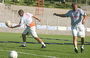Giuliano (E) e Ilo Roxo (D): pai e filho trabalham juntos para aprimorar a técnica do goleiro Clemer