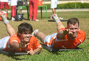 Momento de descontração durante os exigentes treinos da pré-temporada