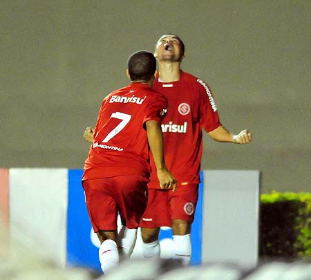 Taison (E) comemora com Marcelo Cordeiro o gol da vitória