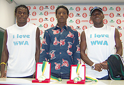 O Sport Club Internacional apresentou na quarta-feira (09/03), durante entrevista coletiva, três atletas nigerianos que ficarão no Estádio Beira-Rio por um período de 30 dias, necessários para conseguirem o visto e regularizar documentação, e depois serão contratados. Os garotos Obinna Victor Nsofor (centroavante), 17 anos, Kolawole Anubi (meia), 17 anos, e Nicolas Obediah Infeanui (meia), 19 anos, jogam na Seleção Sub-20 da Nigéria, atual campeã africana da categoria (na foto, Obinna e Anubi com as medalhas conquistadas na competição).