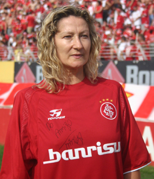 Jozélia Lorenzi foi premiada com a bola do jogo entre Inter e Farroupilha-Pel