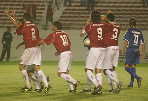 Internacional (4): André; Índio, Edinho e Wilson; Bolívar, Augusto Recife, Tinga (Vinícius), Fernandão (Wellington) e Jorge Wagner; Rafael Sobis e Diogo (Rodrigo Paulista). Técnico: Muricy Ramalho.