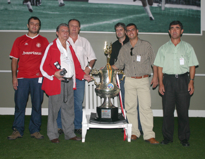 Sócios posam com a taça do Tetracampeonato Gaúcho