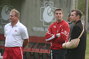 Preparador de goleiros Ilo Roxo (E), Marcelo Boeck (C) e André (D): reencontro de amigos
