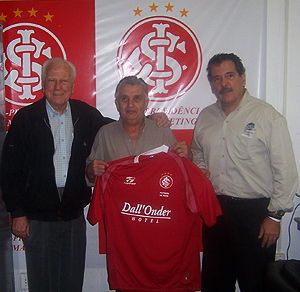 O diretor de esportes amadores do Internacional Nilo Cunha recebeu do departamento de marketing, na última quinta-feira (12/05), 40 camisetas que serão utilizadas pelos atletas do departamento de futebol de mesa do Clube nas competições. Participaram da cerimônia de entrega o 1º Vice-presidente do Inter Arthur Dallegrave e o Vice-presidente de marketing Otavio Rojas.