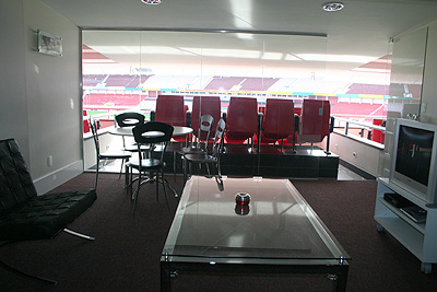 Uma ampla área de estar e confraternização serve de apoio às suítes. Podem receber até 200 pessoas confortavelmente, e contam com bateria de sanitários, sala de estar social com TV de projeção de 44 polegadas, lounge e bar, onde os visitantes podem se reunir após os jogos ou reuniões. Das seis suítes, uma será destinada à delegação do time visitante e as demais cinco serão comercializadas pelo clube. O projeto de arquitetura é de Arquitetônica WF Brasil, sob a representação de Washington Fiuza, e de arquitetura de interior de Marcelo Polido - Arquitetura & Interiores. As suítes, com 60m² cada, fazem parte do projeto que prevê a construção de 89 suítes, formando um anel no interior do estádio. Neste mês de junho começam a ser construídas mais cinco.