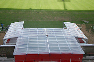 Times entram em campo através de uma cobertura em policarbonato
