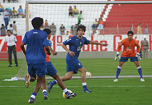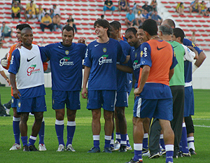 Na segunda parte, Parreira orientou um trabalho tático com os jogadores de meio-campo, ataque e os laterais. Apenas os zagueiros Lúcio e Roque Júnior ficaram de fora. Parreira definiu o time com Dida; Beletti, Lúcio, Roque Júnior e Roberto Carlos; Émerson, Zé Roberto, Kaká e Ronaldinho Gaúcho; Robinho e Adriano.