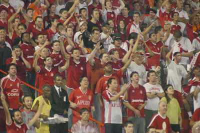 Durante a partida, o torcedor não poupou a garganta e vaiou forte o São Caetano, toda vez que o time paulista ameaçava. Por outro lado, a torcida cantava com orgulho a cada oportunidade quando o Inter se lançava ao ataque.